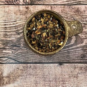 Radici di liquirizia, pezzi di mela, foglie di menta piperita, foglie di leongrass, aromi.