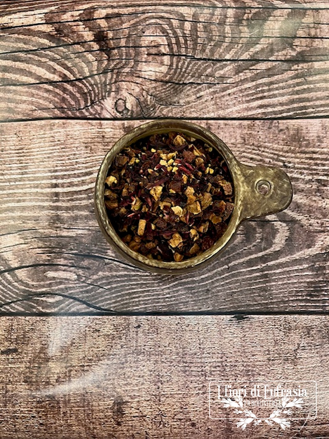 Pezzi di mela, fiori di ibisco, bacche di rosa canina, mandorle, corteccia di cannella, pezzi di veniglia, Bourbon