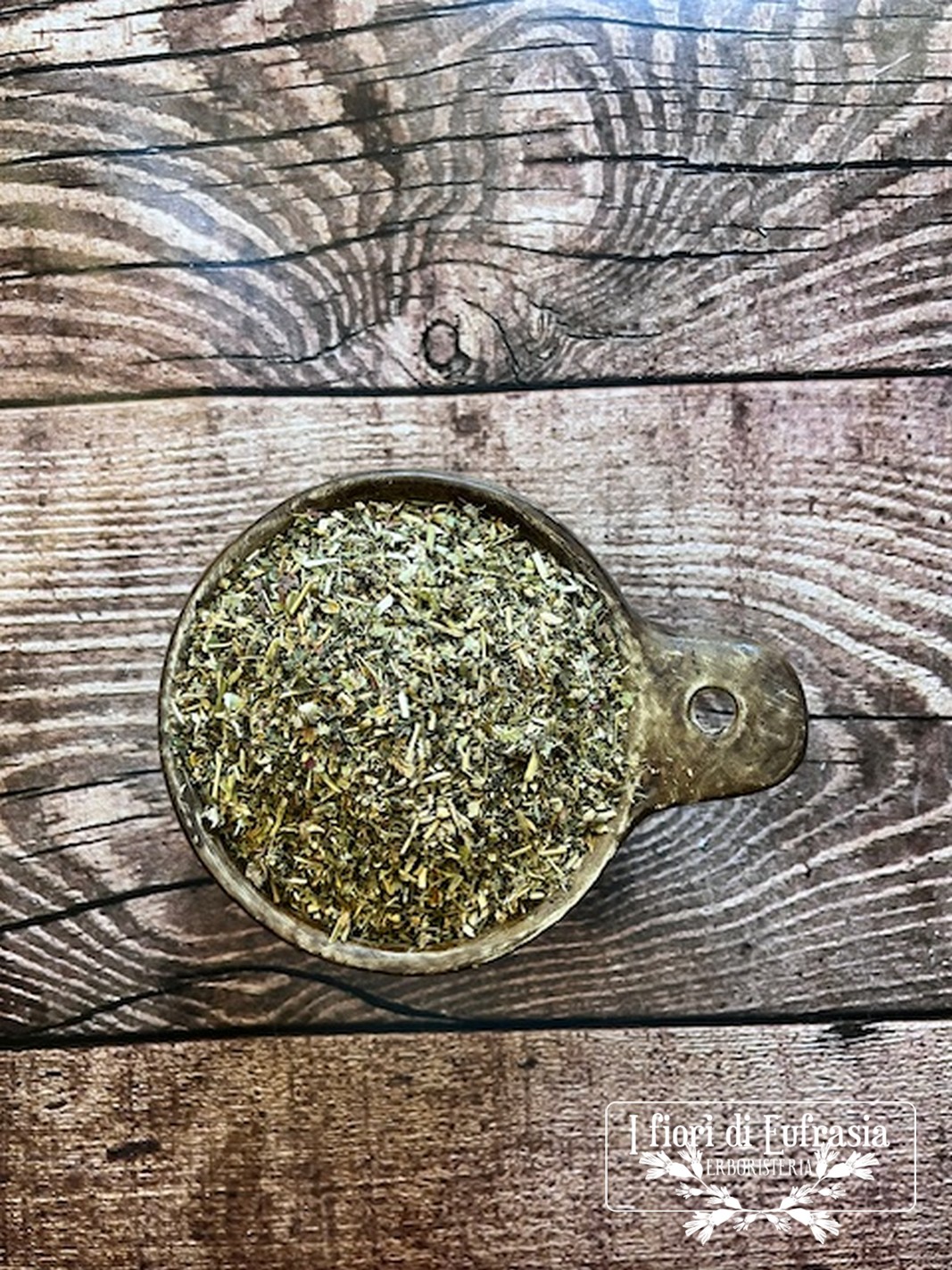 Pezzi di ananas, foglie di melissa, fiori di tiglio. Foglie di lemongrass, fiori di meliloto, frutti di finocchio, foglie di vite rossa, limone, foglie di stevia.